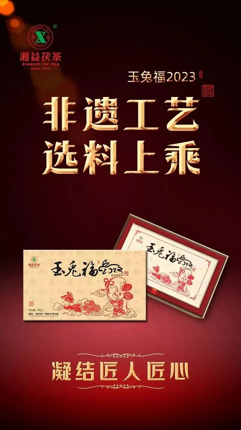 兔,明月之靈,被稱為瑞獸,是聰慧善良、家族興旺的代表,寓意長壽、平安吉祥。“玉兔福2023”以“玉兔呈祥”立意,凝聚新一年的時與運(yùn),蘊(yùn)藏著湘益茯茶對兔年的理解與美好寄望,祈愿兔年大吉、前途似錦、福運(yùn)綿長。精選雪峰山脈核心產(chǎn)區(qū)一級黑毛茶,條索緊結(jié)肥壯、嫩度高,內(nèi)含物質(zhì)豐富。由國家級非遺茯磚茶制作技藝代表性傳承人劉杏益大師結(jié)合多年制茶經(jīng)驗、依古法精制而成。非遺技藝結(jié)合現(xiàn)代化制茶工藝,塑造了“玉兔福2023”茶香馥郁、層次豐富的特性。